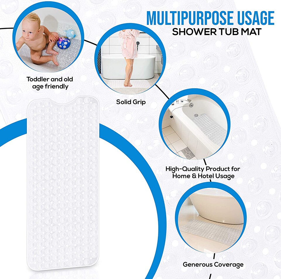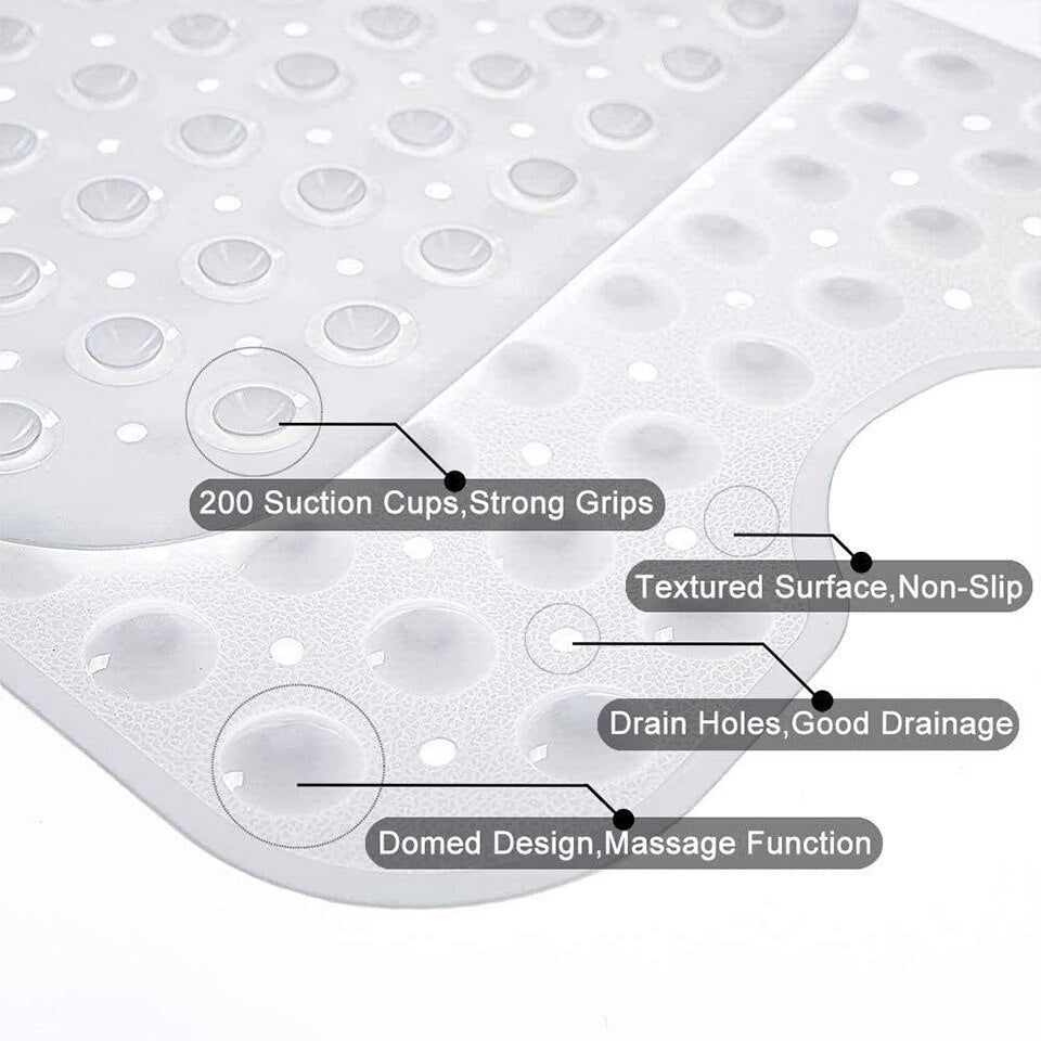 Dette ekstra store og generøst dimensierede bademåt er 100 x 40 cm og giver fremragende dækning. Mange andre måtter er mindre og efterlader områder af dit badekar udsat. Og mens andre måtter er solide og skaber vandpytter under, har vores måtte 176 små huller overalt for at tillade vandet at cirkulere.