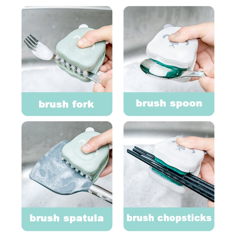 • Med ergonomisk design og dobbeltsidede børstehår giver rengøringsbørsten dig mulighed for hurtigt at rengøre tallerkener, bestik osv. uden at ridse dine fingre.