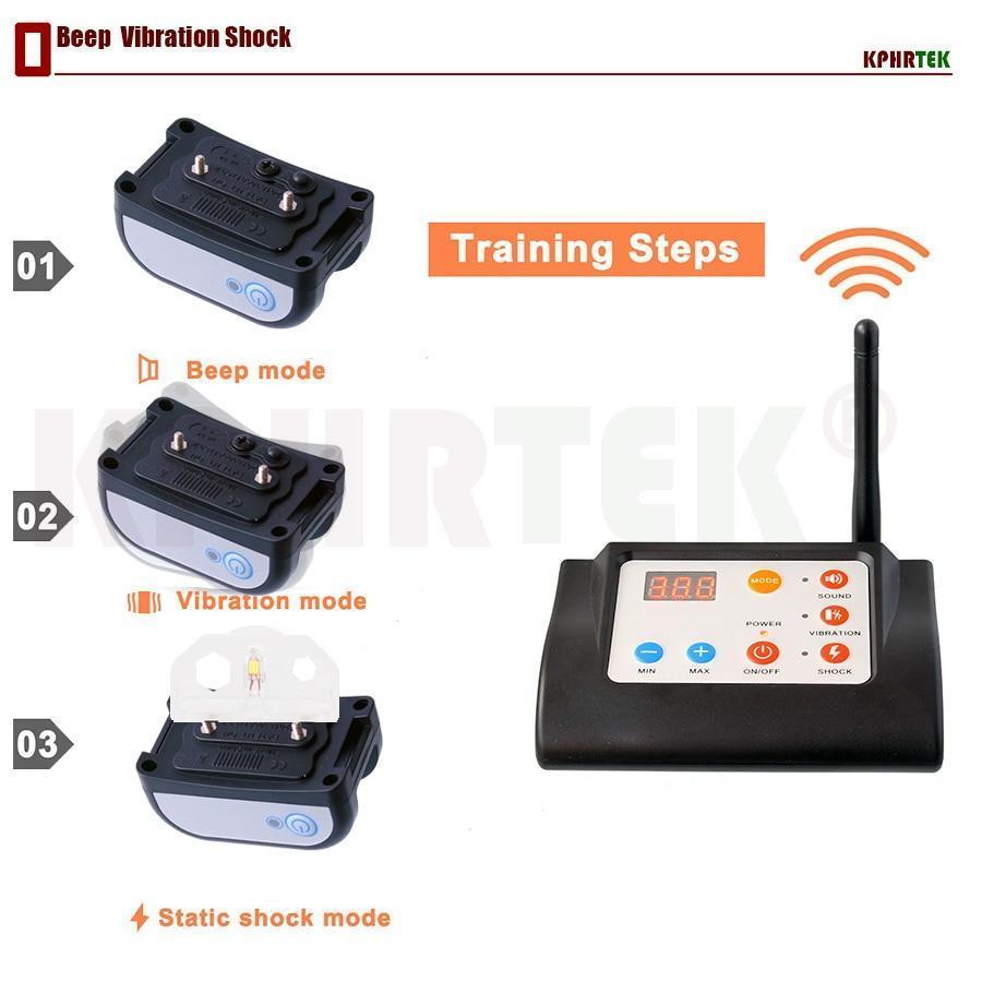 • Multifunktionel træning: Med lyd-, vibration- og statiske alarmer kan du nemt træne din hund og korrigere adfærd.