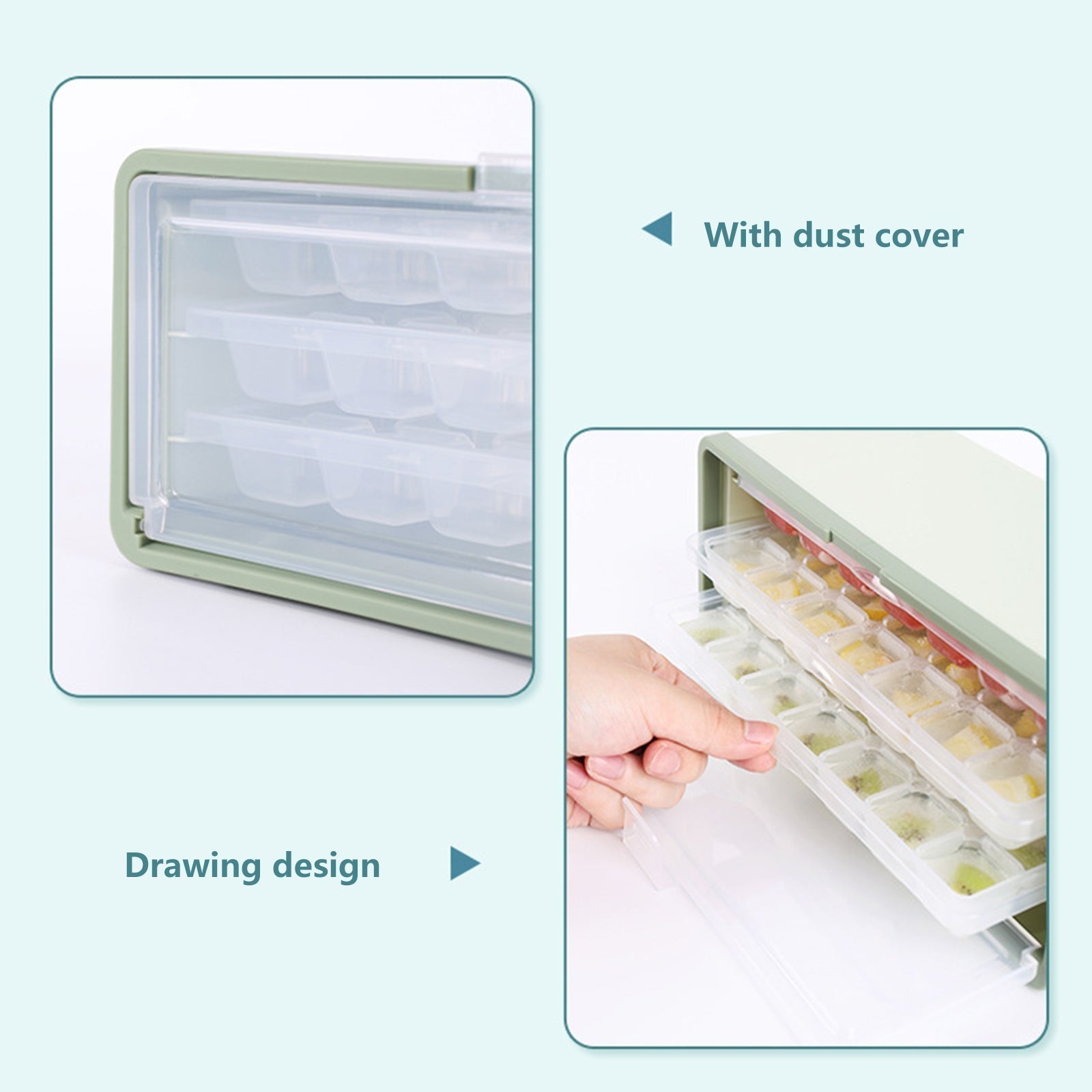 Videnskabeligt design: Aftagelig isterningbakke med en beholder for nem opbevaring og adgang til isterninger og forhindrer isterninger i at absorbere lugte.