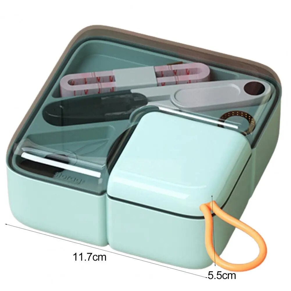 Med et dobbeltlagsdesign holder denne syæske dine syværktøjer pæne, og den har en skillevæg i midten, der hjælper dig med at adskille dine syværktøjer fra dine tråde og holde dine ting organiseret.