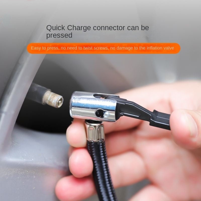 Dette er Turbo Charge Quick Air Pump. Det er en kraftfuld, kompakt luftpumpe, der er perfekt til at opsætte dæk, bolde og andre oppustelige genstande. Den har en højtryksudgang og et hurtigudløbsventil for nem inflation. Pumpen er lavet af holdbare materialer og er nem at bruge.