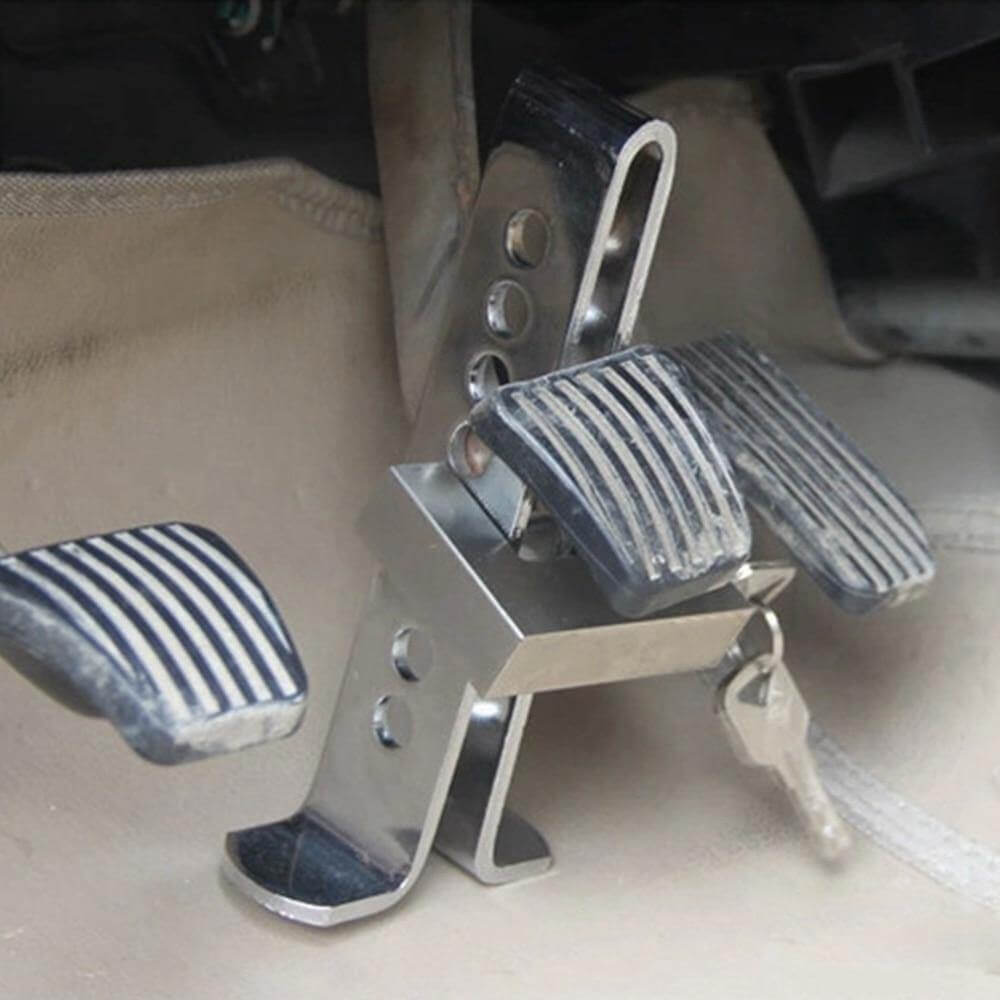 Stål Bil Sikkerheds Pedallås forhindrer tyveri af et køretøjs gas- eller bremsepedal. Pedallåsen fastgøres til toppen af enhver køretøjs bremse- eller acceleratorpedal, og den er lavet af stærk solid stål. Låsen er designet til at være let at fjerne; dog forhindrer dens fastholdelsessystem pedalen i at blive fjernet uden nøglen.