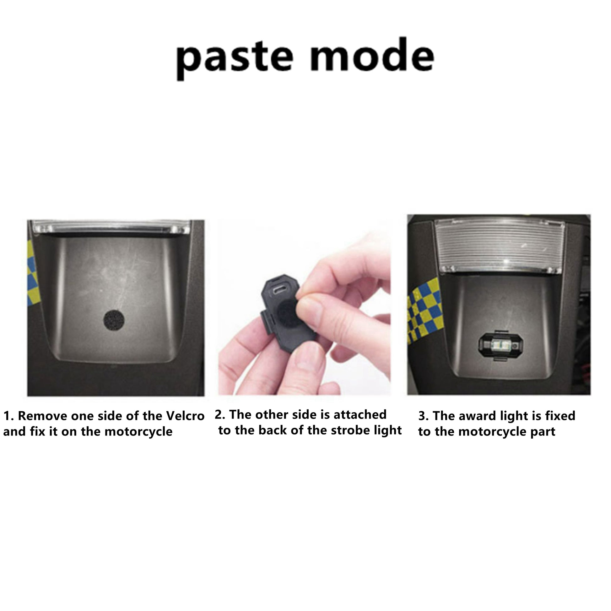 • Rød/grøn/hvid 3 farver, i alt 6 langsomme/hurtige blinkemodes kan justeres frit.