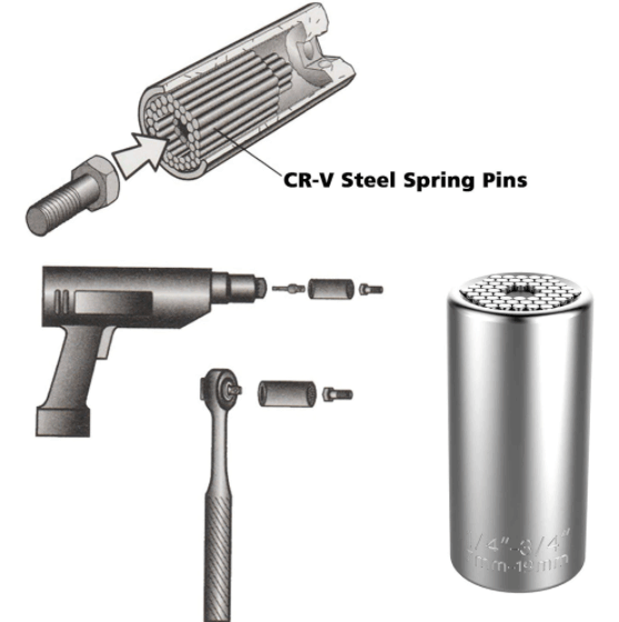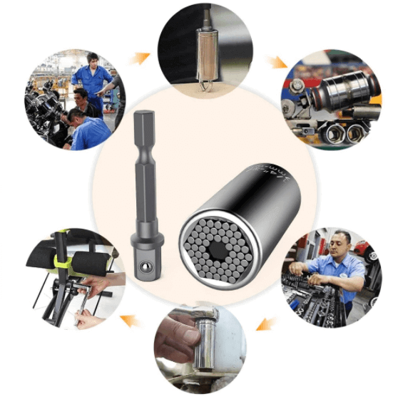 Den Universelle Cylinder Socket Sleeve er designet til at passe til de fleste 3/8 tommer - 2 tommers sokler og nøgler. Socket sleeve værktøjet kan bruges i bilvedligeholdelse og reparation, husarbejde osv. Det er nemt at bruge og kan bruges til mange formål. Dette er et nyt produkt til at hjælpe dig med at reparere, opgradere og fikse ting derhjemme og udendørs i dit hus og have. Det er en lille og let konstruktion, så det er nemt at håndtere og bruge.