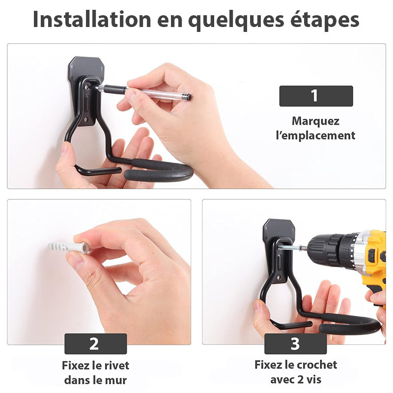 Med disse vægmonterede kroge kan du hænge og tage din cykel ned på et øjeblik. Spar tid hver dag og fokuser mere på dine cykelture frem for opbevaring.