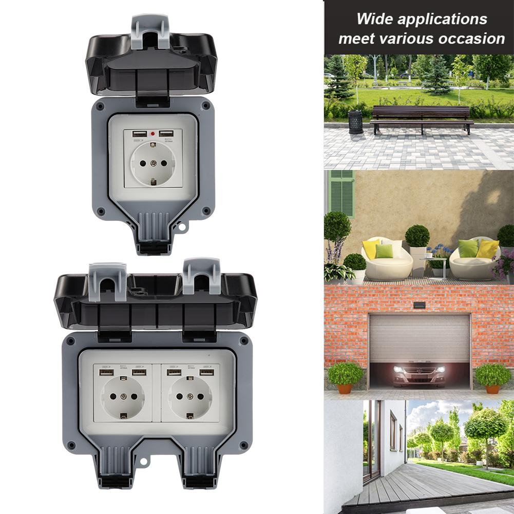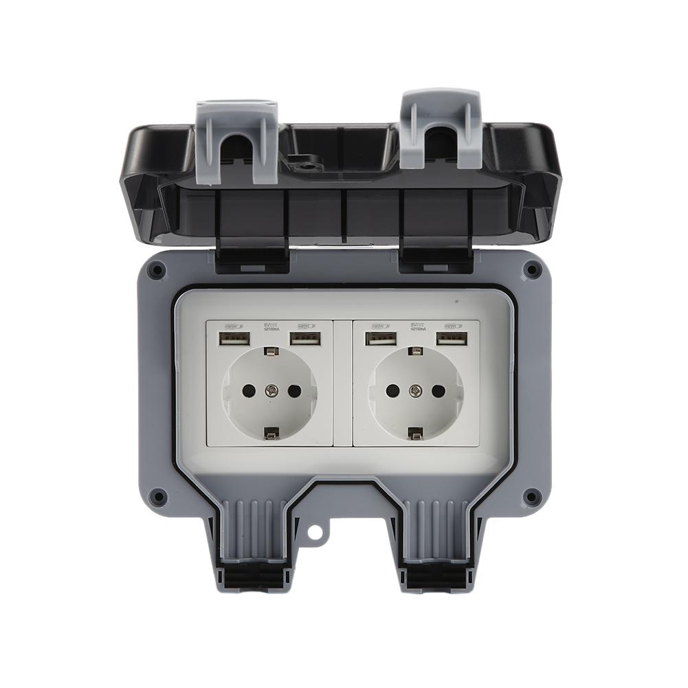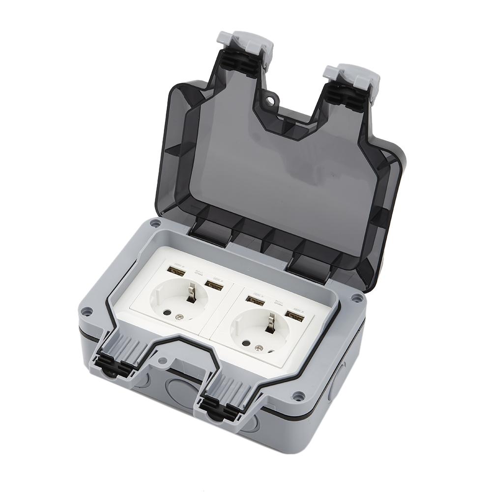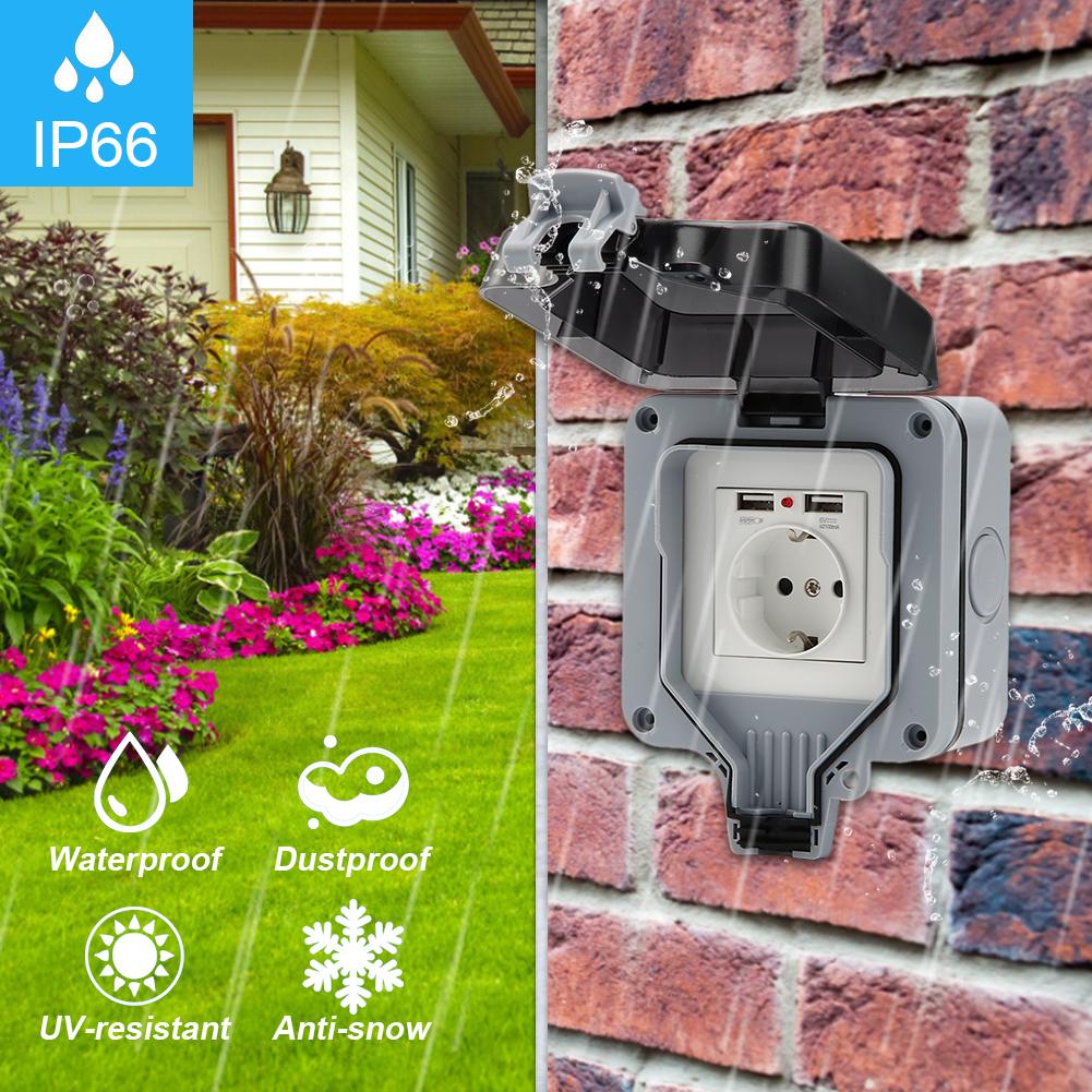 De vejrbestandige stikkontakter er meget velegnede til brug i haven, i værkstedet, i haven, på terrassen og i badeværelset. Det vandtætte dobbelte stikdesign til udendørs brug med IP66 klassifikation giver en fremragende, sikker vandtætning, når det er lukket, og er ideelt til en sikker strømforsyning under vanskelige forhold.