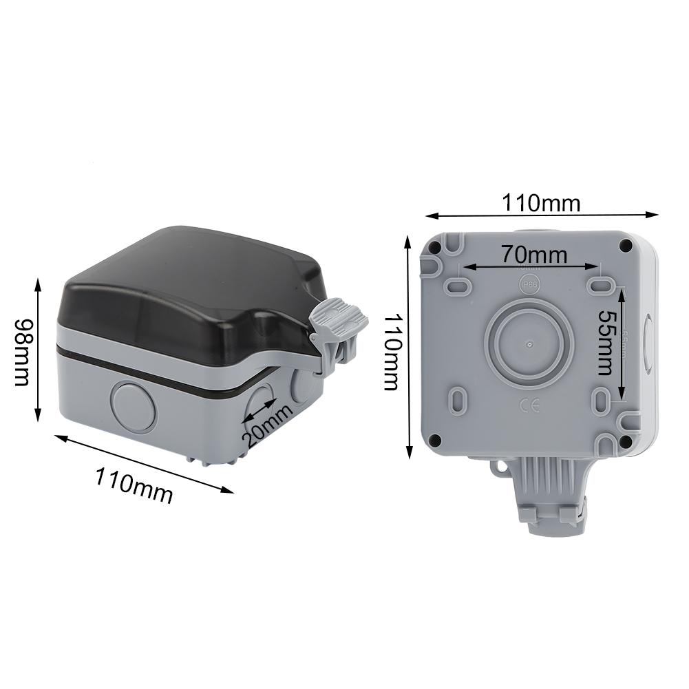 Holdbart materiale: Den udendørs stikkontakt vægkontakt til udendørs brug er lavet af højkvalitets ABS-materiale, som er holdbart og tilbyder høj beskyttelse mod vandstråler og støv. Et robust og stødresistent kabinet vil ikke gå i stykker eller falme.